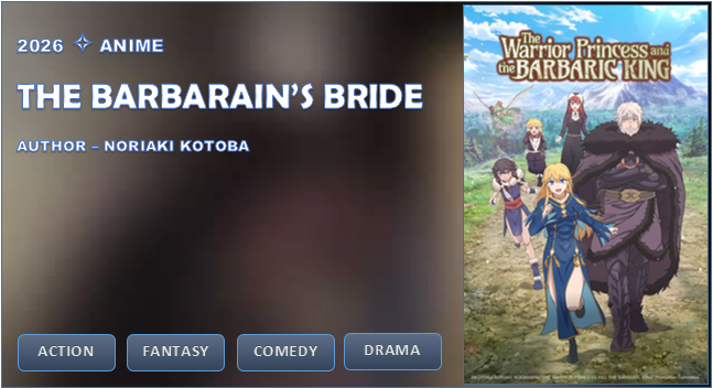 demo Japanese Name – 姫騎士は蛮族の嫁 Platform Type – TV Total Episodes – ? Series Status – Currently Airing Episode’s Duration – 24 Min Aired On – Apr-09-2026 End On – ?-?-? Season – FALL IN SPRING 2026 Studio – JUMONDOU Theme…