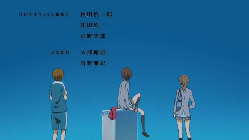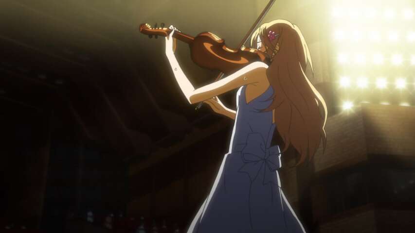 Now Kousei plays piano in a big competition, remembering his mother and Kaori’s support. Suddenly Kaori’s health gets worsens, but she asks him to play with her one last time. As she prepares for competition her health gotten more serious, then she have no option other than a surgery, Kousei went to see her in hospital and meet kaori and talk to each other, then she motivates Kousei to play piano and imagine me that I’m always with you.
